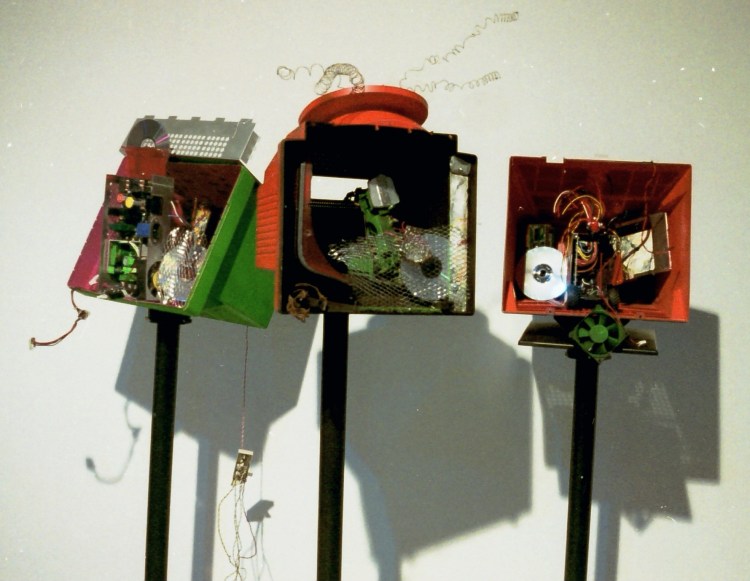 In 1998 I was asked to participate in the Art Gallery of Hamilton’s upcoming “Countdown to the Millenium” exhibition series and put together an exhibition of ‘found material / assemblage artists, “Be Afraid, Be Very Afraid” was assembled It included Ray Cinovskis, Chriseddie, Chris Hartnett, Brian Kelly, Jim Mullin and myself and was exhibited in 1999.