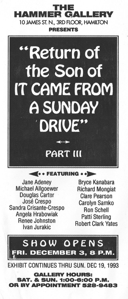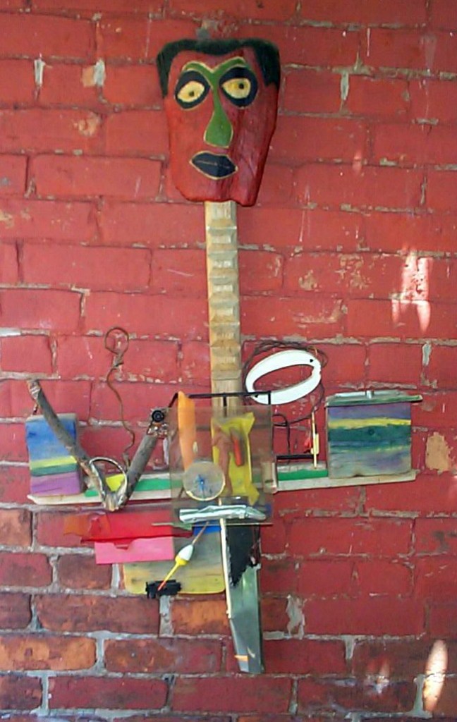 It was a long way up from the street to carry your art up those wide steep steps to the Gallery. And home to Denise Lisson & Jim Mullin, proprietors. Jim & Denise gave me a lot of encouragement to continue my creative efforts in the use of found material in the context of ‘fine art’ painting & sculpture. After the loss of my mentor and friend Gordon T. White, I had lost my sense of direction and was not doing much creatively. And they provided opportunity after opportunity to exhibit my work in their many group shows and in 1995, a solo show, “Under The Gun”. And as well 2-man exhibition with Jim Mullin, for which we made 5 of the pieces by exchanging them several times and doing our own ‘thing’ to them each time. “Conspiracies”.