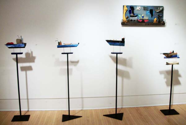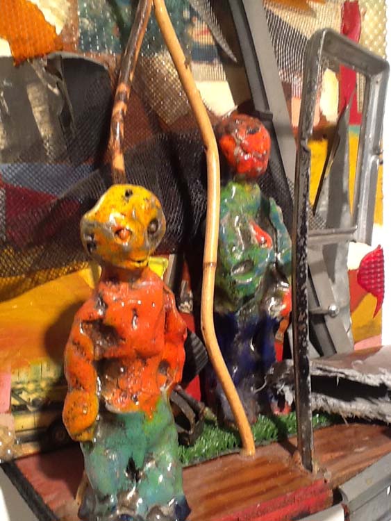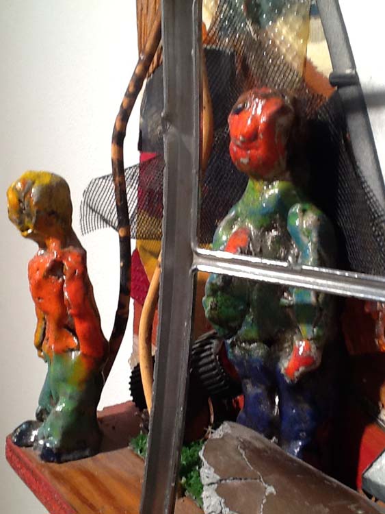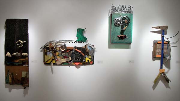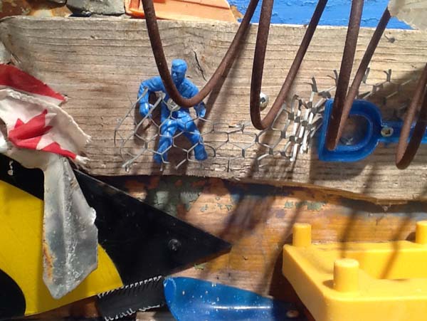 I began to scan my neighbourhood for things to make visual art with, bits & pieces of ‘cultural debris’ and found grounds instead of stretched canvas, visual art that would look nothing like the ‘status quo’ of the local art scene. Along the line I discovered Robert Rauchenberg and JohnChamberlain and then found work by Louise Neville and Joseph Cornell at the Albright Knox Art Gallery in Buffalo, N.Y.. The aforementioned and many other artists of their era were represented in the gallery’s collection. Karl Appel’s earliest work, paintings on found grounds, showed up at the Art Gallery of Hamilton and another exhibition there by the American sculptor David Smith opened my mind to new ways to ‘assemble pictures’ and look at sculpture. I knew I was on the right track and was going to keep on doing art ‘my way’ following this tradition. When I started ‘arting’ I hoped to open, through my work, people to other ways of looking at the world and the man-made objects in it and at visual art using found materials in the context of traditional painting. It seemed a great way to start. Responding to the waste generated by a throwaway society, utilizing these nagging reminders of the consequences of modern / current culture is still very important in this age of recycling, climate change and globalization.