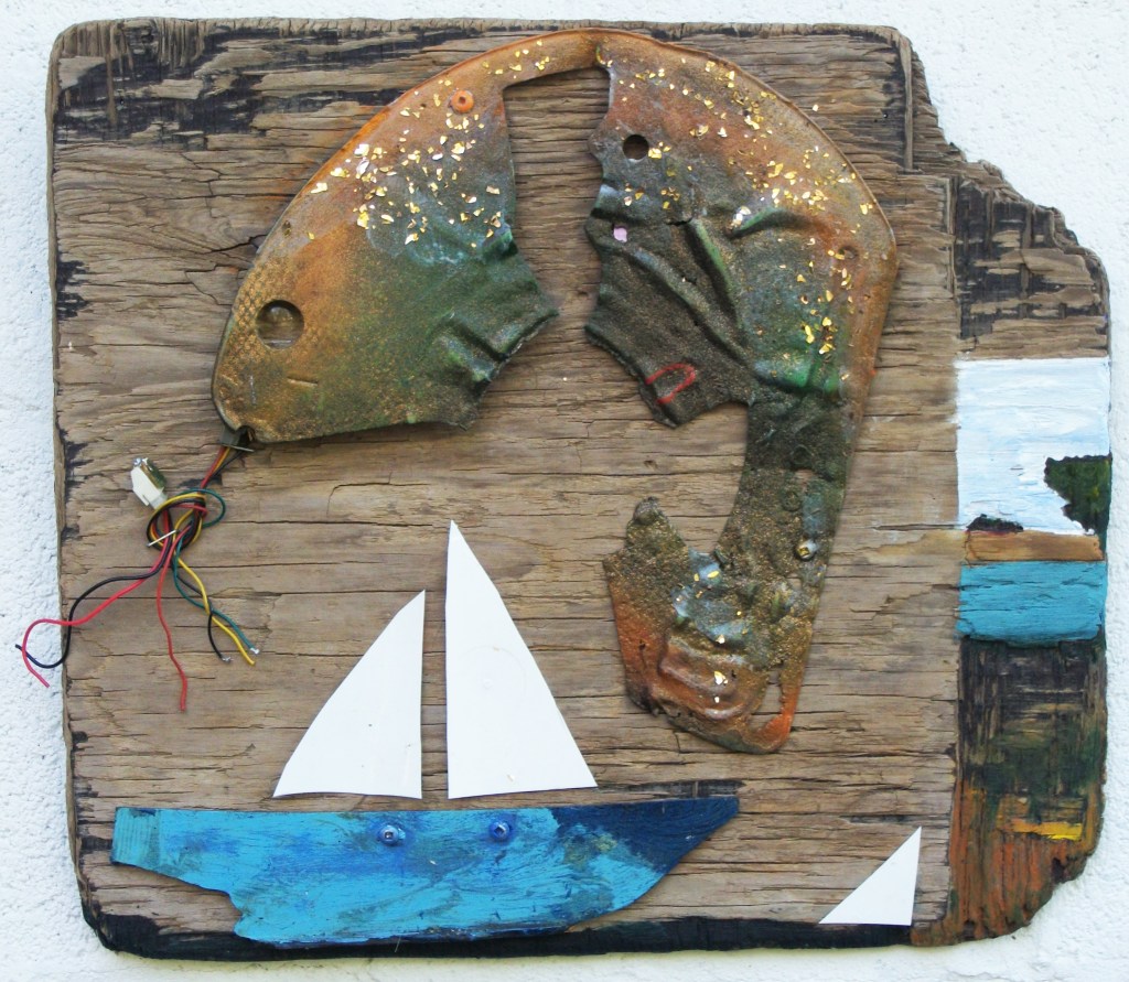 As a visual artist, I draw, print-make and paint in oils and watercolour but the main style in which I’ve worked my entire arts career is Assemblage which is an artistic process that consists of making three-dimensional or two-dimensional artistic compositions by putting together found objects or what I call in my case when I paint in harmony with found materials, “Constructions”.
